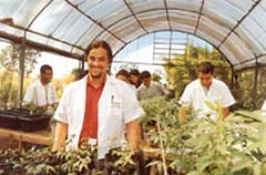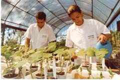 Ao lado da família, em Montes Claros, Gisele Ancelmo de Souza, de 22 anos, encontrou no curso de Agronomia a opção que atende à sua vocação pela área biológica. “Sempre tive vontade de mexer com plantas, mas descobri que existem também outros caminhos”, relata. Gisele lembra que o curso a surpreendeu em muitos detalhes. Logo de início, desmitificou-se a idéia de que o aluno de Agronomia estaria sempre com mãos e botas sujas de terra. “Não é nem um pouco verdade, pois, embora o trabalho diretamente no campo seja muito importante, existem outras áreas a que o profissional pode dedicar-se”, diz. O interesse de Gisele levou-a para os laboratórios, onde participa do projeto de pesquisa e de extensão Recursos Genéticos em Frutíferas Nativas e Plantas Medicinais, cuja maior preocupação é a extração predatória da fava-d’anta, uma planta cujo princípio ativo é utilizado na fabricação de medicamentos por laboratórios.