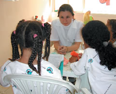 Eber Faioli![]() A estudante de Psicologiada UFMG, MARIANA REIS JULIANE, conversa com crianças na brinquedoteca do Hospital da Baleia |